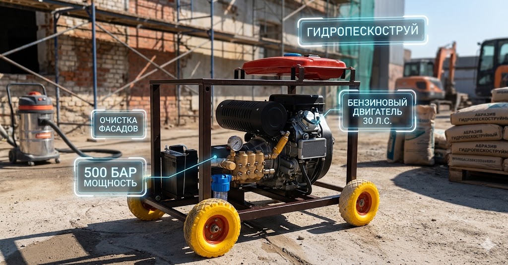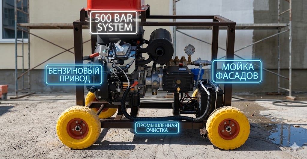 Промышленный бензиновый аппарат высокого давления 500 бар (30 л.с.) | Гидропескоструй и мойка фасадов