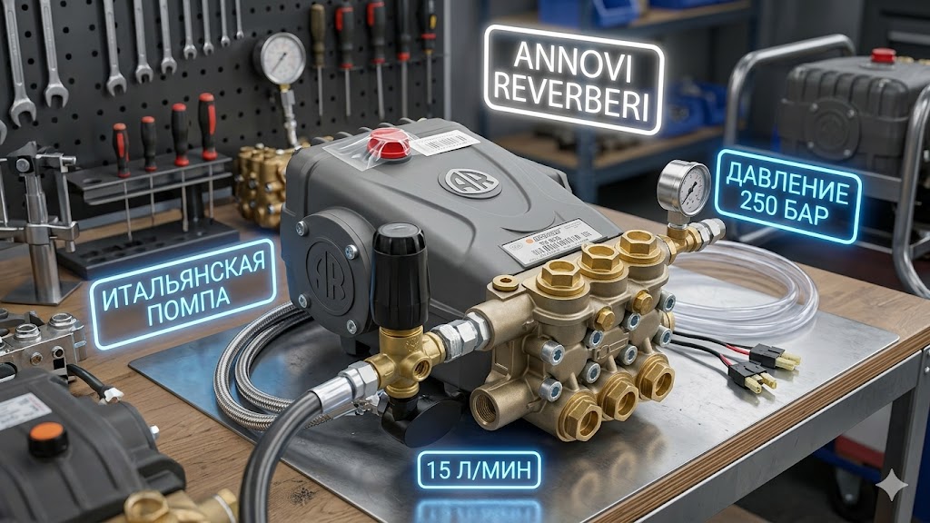 - 🇮🇹 Помпа Annovi Reverberi (Италия) — индустриальный плунжерный насос серии RR (250 бар, 15 л/мин).