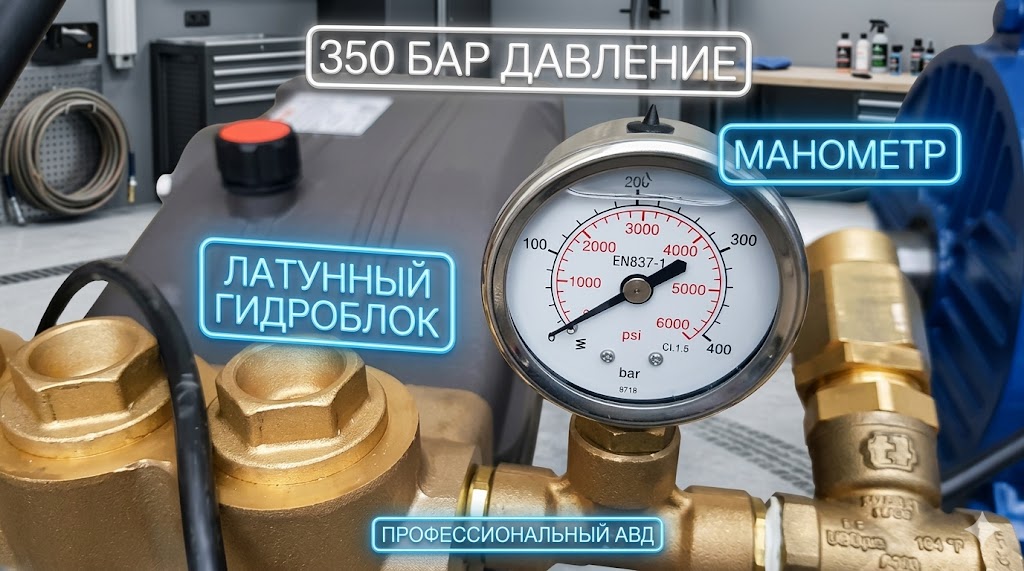 - Надежность Hawk. Для давления свыше 300 бар критично качество керамики плунжеров и латуни головки. Итальянская помпа Hawk выдерживает длительные циклы работы на пиковых нагрузках без разрушения клапанной группы.