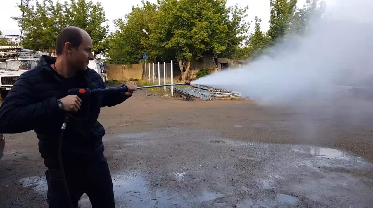 - Эффект гидрозубила. Давление до 200 бар смывает грязь. Давление 350 бар в связке с грязевой фрезой (ротационной форсункой) разрушает адгезию коррозии к металлу.