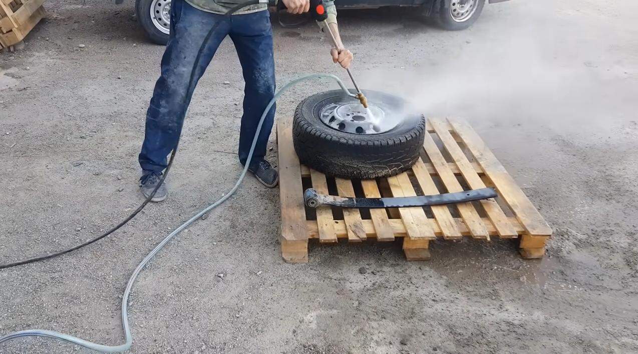 350 бар безопасно только при правильном подборе форсунок. Для открытых участков рамы и мостов используется турбофреза, которая сбивает мастику. В зонах расположения пыльников ШРУСов, датчиков ABS и проводки необходимо переключаться на веерную форсунку 40° и увеличивать дистанцию распыла, чтобы избежать порезов резины.