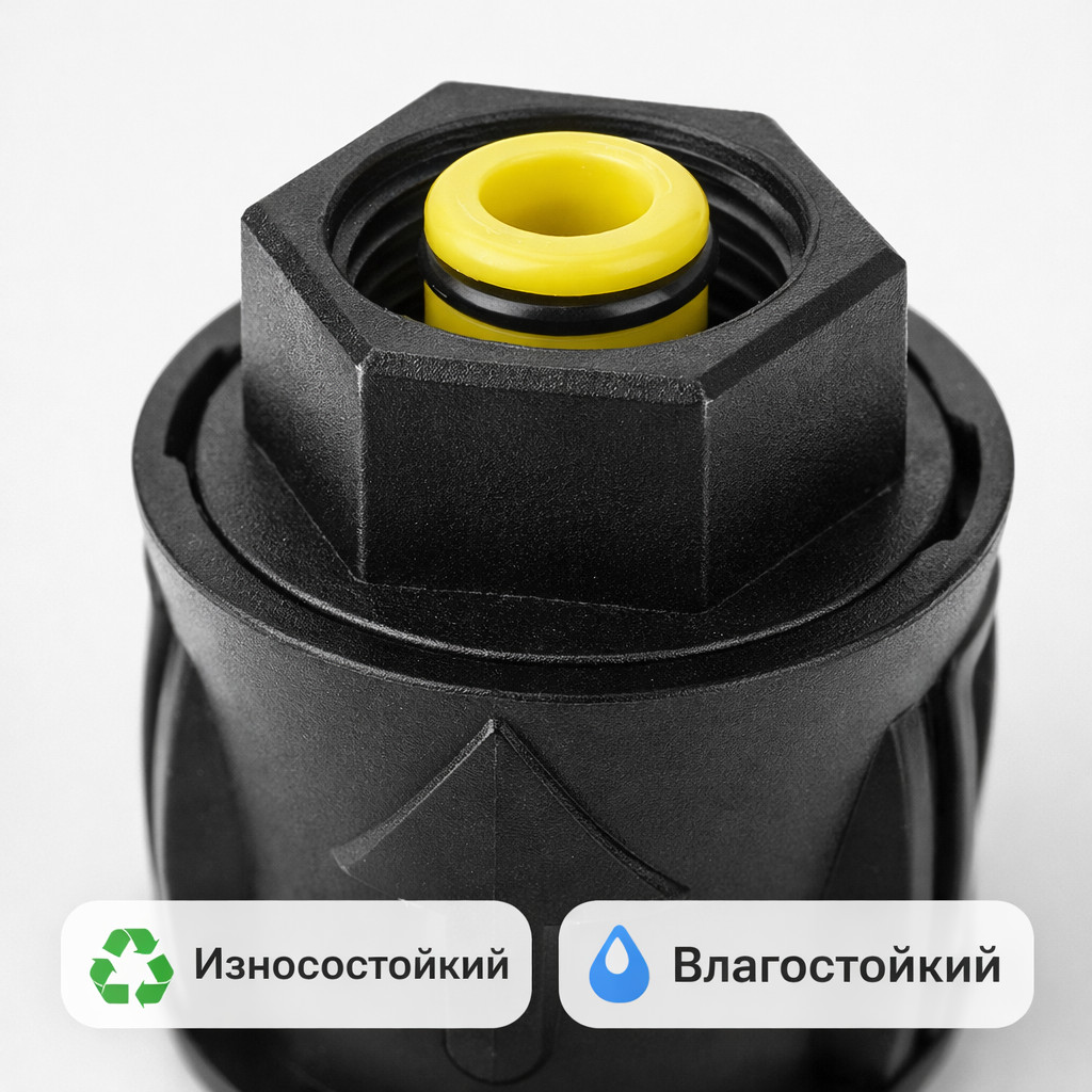 Адаптер предназначен для подключения бытового шланга к оборудованию Karcher. Обеспечивает надёжное соединение, герметичность и быстрый монтаж без дополнительных инструментов.