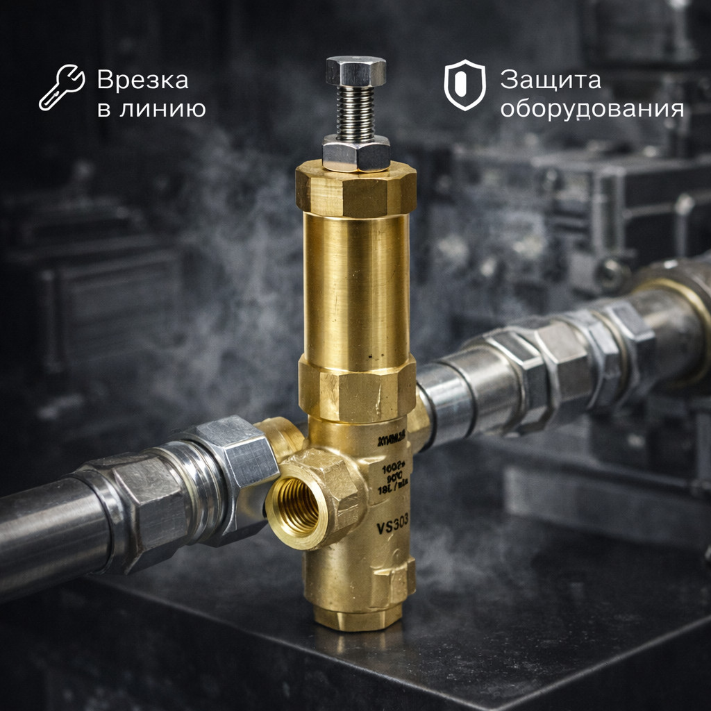 VS500 используется как элемент аварийной защиты в профессиональных и промышленных установках высокого давления. Регулятор срабатывает при резком росте давления, предотвращая повреждение насоса, трубопроводов и соединений.