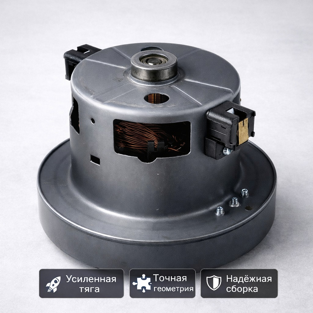 Электродвигатель VCM K60EU применяется как универсальный сменный мотор для бытовых пылесосов Samsung. Оптимальный баланс мощности и ресурса позволяет восстановить эффективную тягу без замены техники.