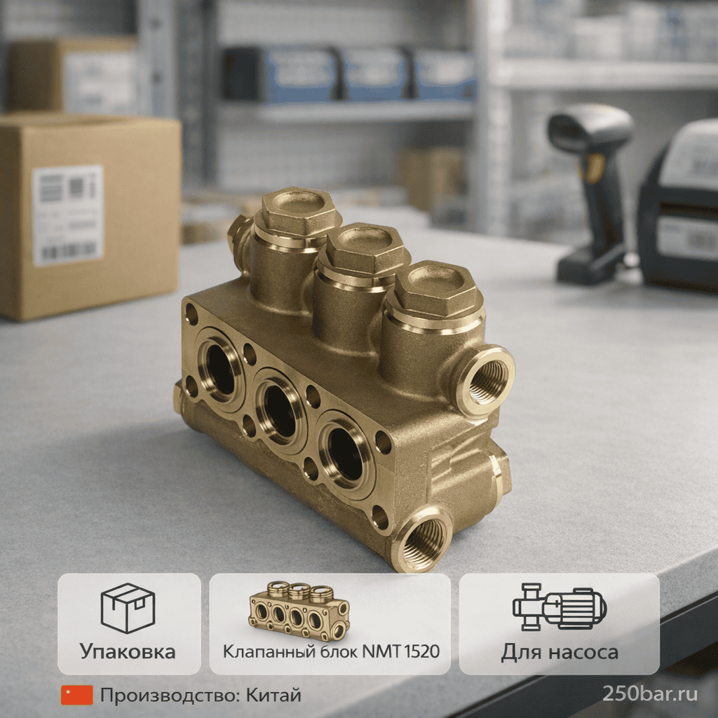 Клапанный блок подходит для насосов Hawk NMT 1520, применяемых на автомойках, МСО и в промышленном оборудовании.