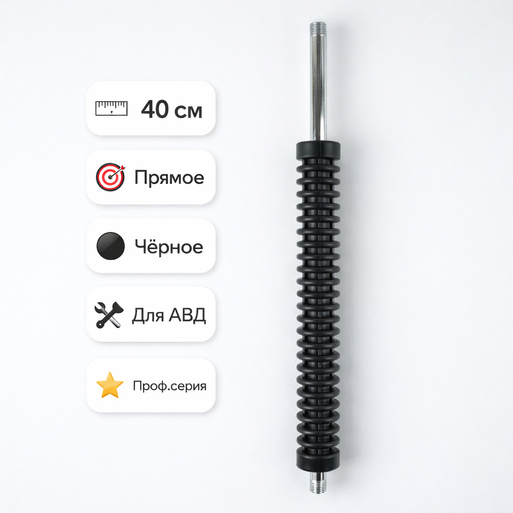 Прямое копьё длиной 40 см в чёрном цвете для моек высокого давления. Увеличенная рабочая дистанция, точный контроль струи и комфорт при ежедневной профессиональной эксплуатации.