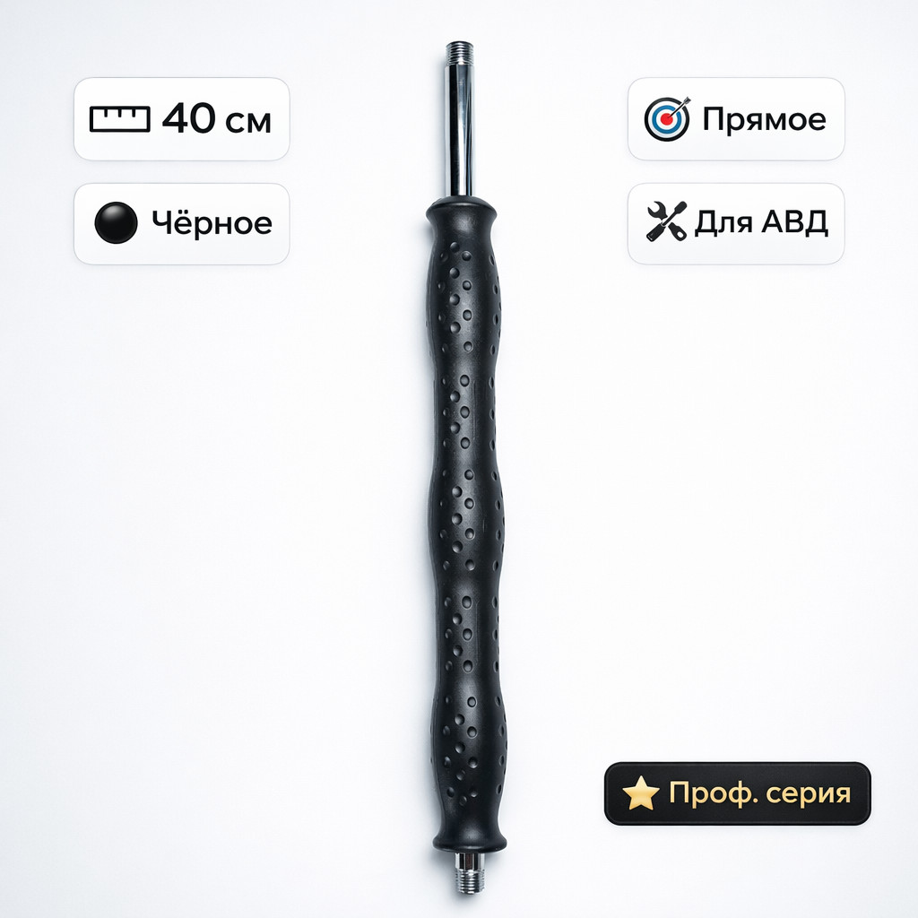 Прямое копьё длиной 40 см в чёрном цвете для моек высокого давления. Увеличенная рабочая дистанция, точное направление струи и комфорт при ежедневной профессиональной эксплуатации.