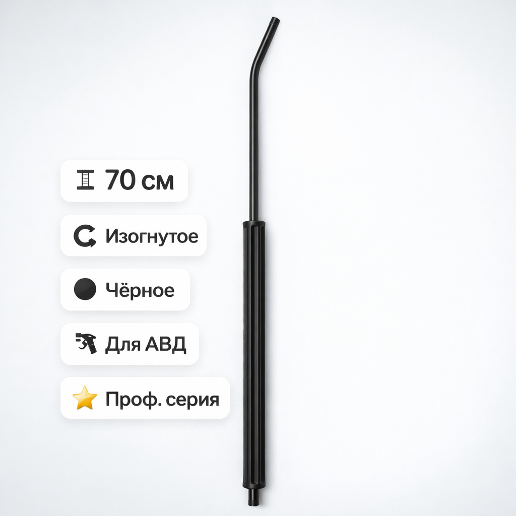 Изогнутое копьё длиной 70 см для моек высокого давления. Позволяет удобно очищать труднодоступные зоны, обеспечивает комфортную рабочую дистанцию и точный контроль струи.