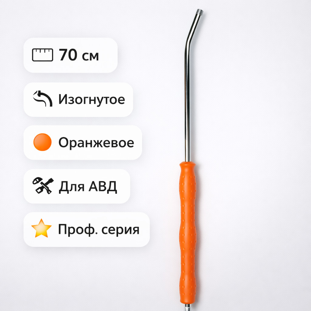 Изогнутое копьё длиной 70 см в ярком оранжевом цвете для моек высокого давления. Удобный доступ к труднодоступным зонам, хорошая видимость инструмента и точный контроль струи.