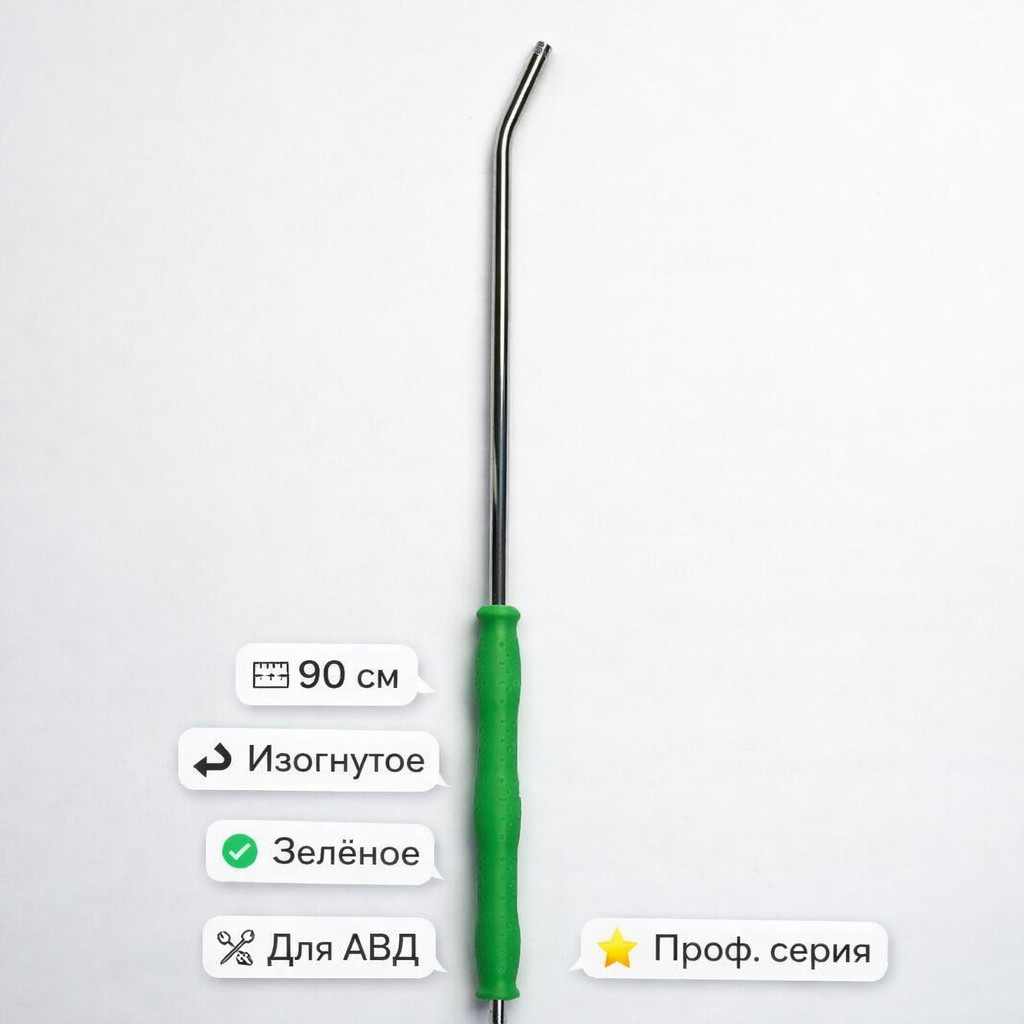 Изогнутое копьё длиной 90 см в зелёном цвете для моек высокого давления. Обеспечивает максимальную рабочую дистанцию, удобный доступ к сложным зонам и точный контроль струи.