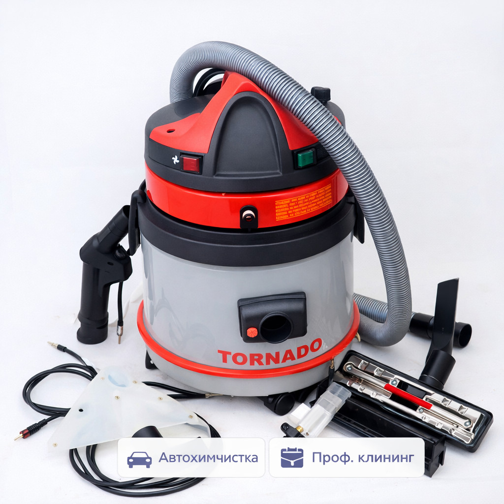 Soteco Tornado 200 IDRO — профессиональный моющий пылесос‑экстрактор с водяным фильтром, 1 турбиной и раздельными баками 27/6,2 л, поставляется в полной комплектации для глубокой и гигиеничной очистки.