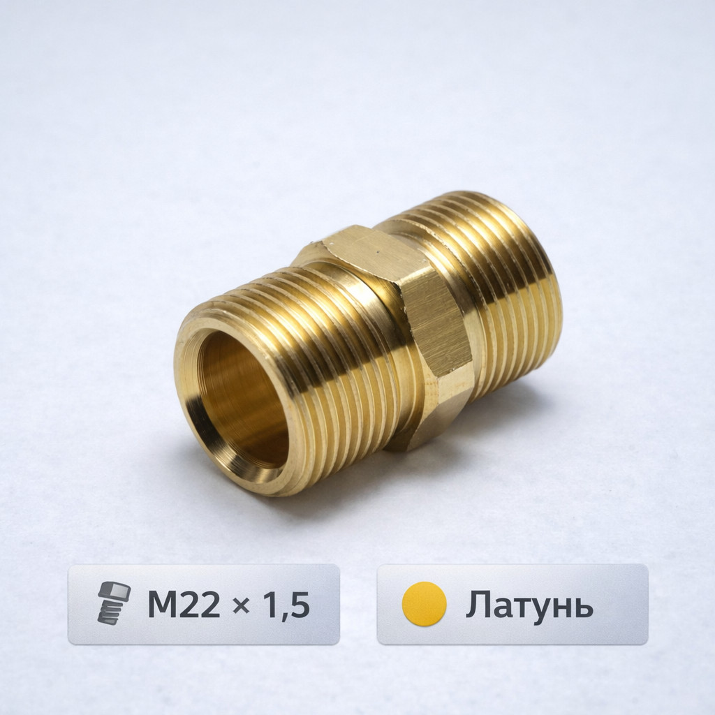 🔩🔗 Переходник М22 × 1,5 – М22 × 1,5 латунный A11B‑M22MM22M