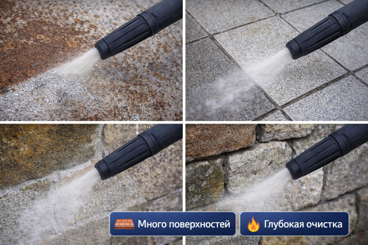Насадка совместима с бытовыми мойками высокого давления разных брендов.