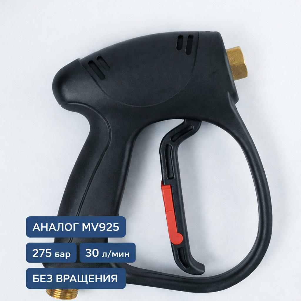 Профессиональный пистолет высокого давления G08P без муфты вращения — надёжный аналог MV925. Рассчитан на давление до 275 бар и расход до 30 л/мин. Оптимален для стационарных постов и интенсивной эксплуатации.