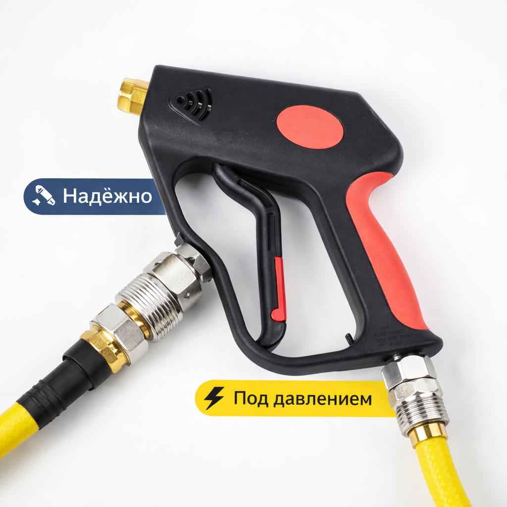 Пистолет высокого давления SG5 Weeping Low с вращающимся соединением и режимом текущий под давлением. Предназначен для стабильной и интенсивной работы на автомойках и в системах АВД.