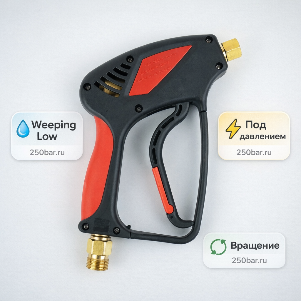 Пистолет высокого давления SG5 Weeping Low с вращающимся соединением и режимом текущий под давлением. Предназначен для стабильной и интенсивной работы на автомойках и в системах АВД.