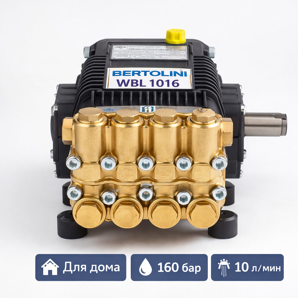 Плунжерный насос Bertolini WBL 1016 предназначен для бытовых и лёгких профессиональных задач. Обеспечивает давление до 160 бар и увеличенную для бытового сегмента производительность 10 л/мин.