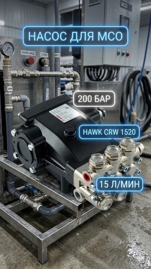 плунжерный насос для МСО, насос Hawk CRW 1520, насос высокого давления для автомоек.