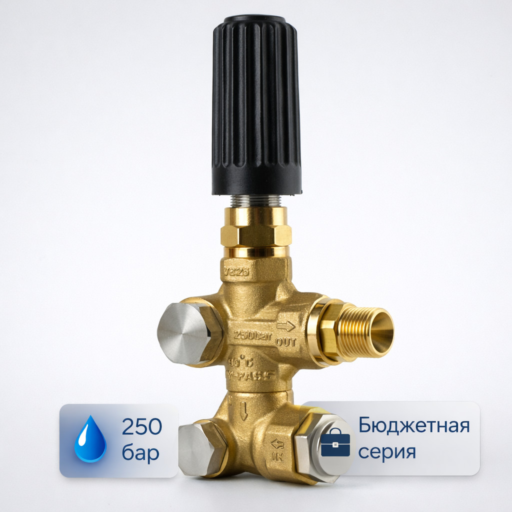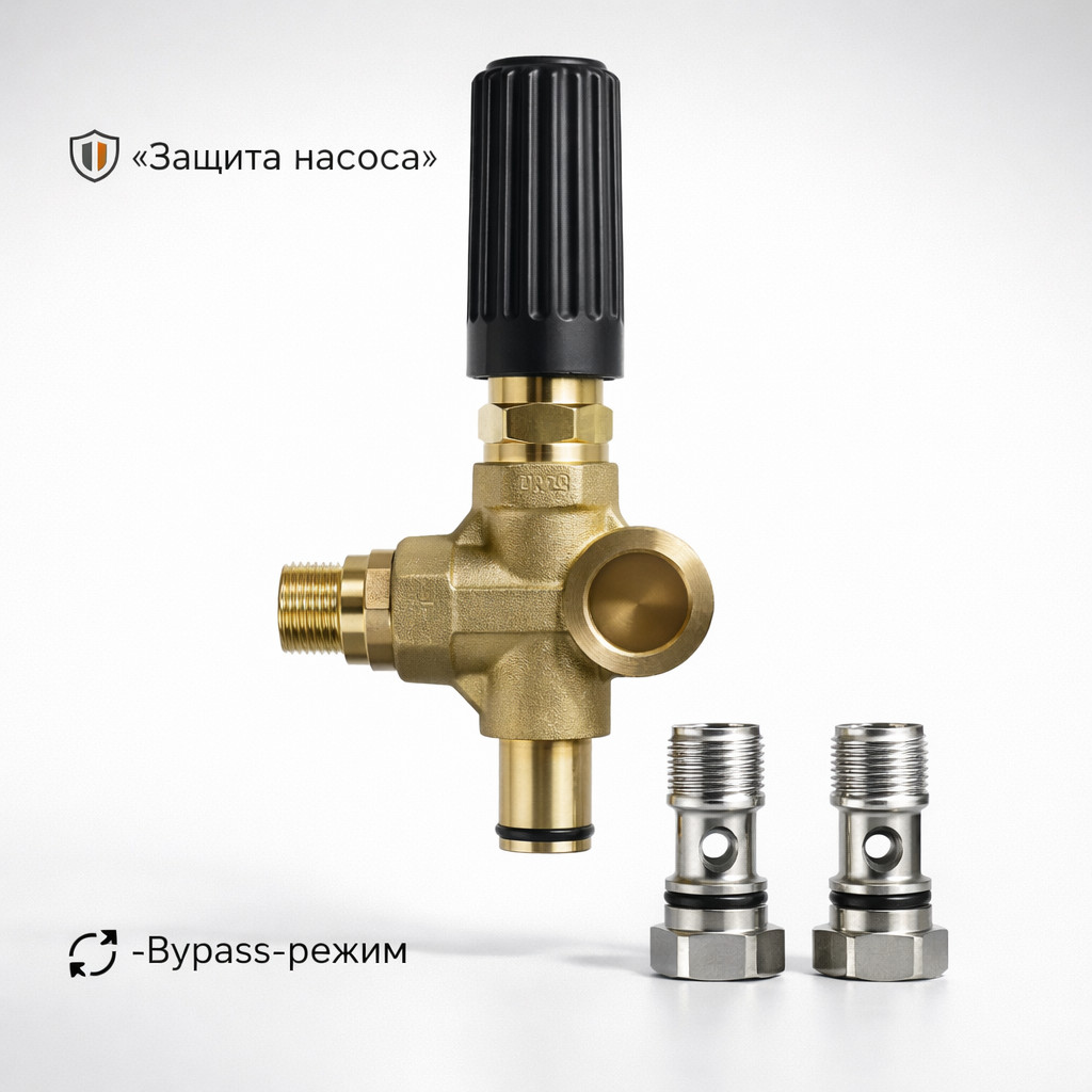 Регулятор давления UV0301 — бюджетный bypass‑регулятор для систем высокого давления. Предназначен для стабилизации рабочего давления и автоматического сброса воды в обход при закрытии пистолета.