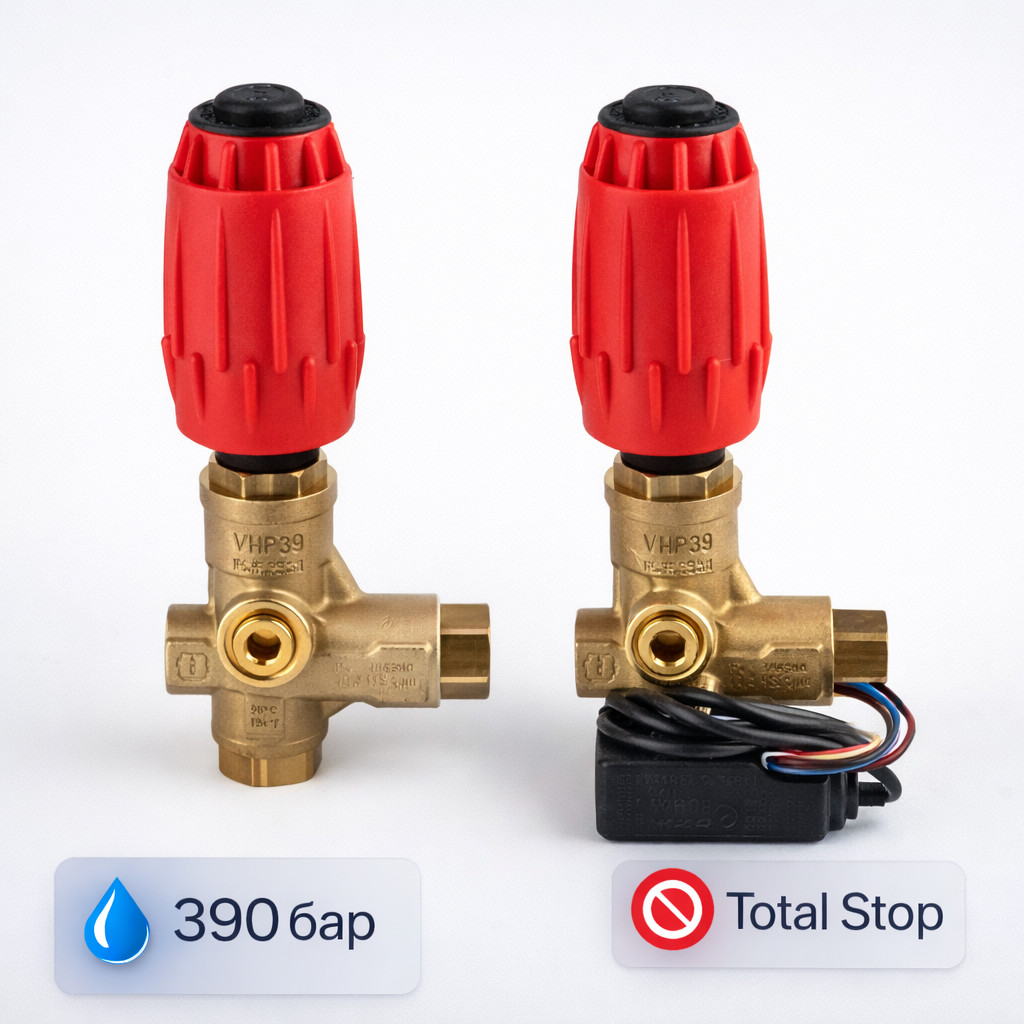 Mecline VHP39 — профессиональный регулятор давления итальянского производства с поддержкой режимов Bypass и Total Stop. Предназначен для стабильной и безопасной работы систем высокого давления до 390 бар.