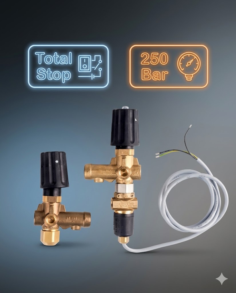 Регулятор R+M ST‑261 применяется в профессиональных моечных и промышленных системах высокого давления. В режиме Total Stop устройство автоматически отключает насос при закрытии пистолета, снижая износ оборудования и энергопотребление.