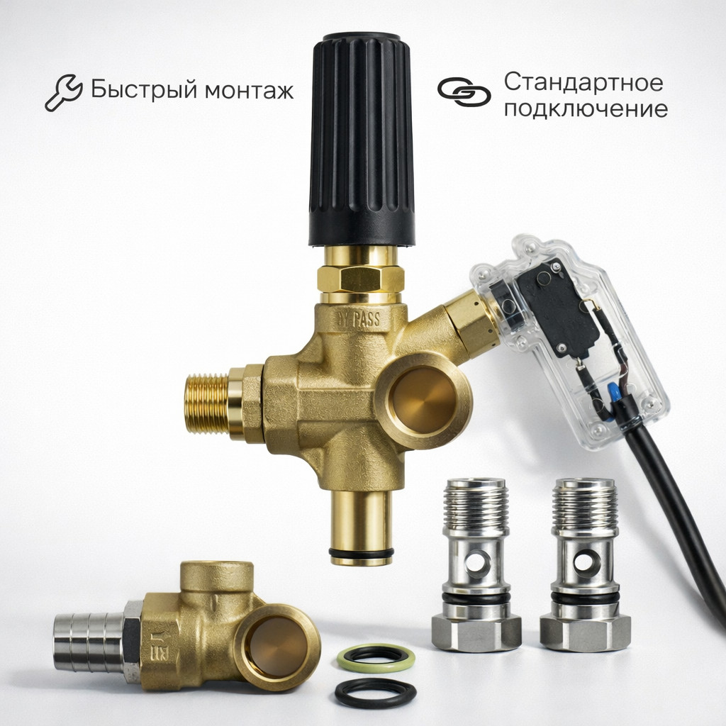 Благодаря пропускной способности до 40 л/мин, регулятор подходит для насосов средней и повышенной производительности и широко применяется в бюджетных профессиональных установках.