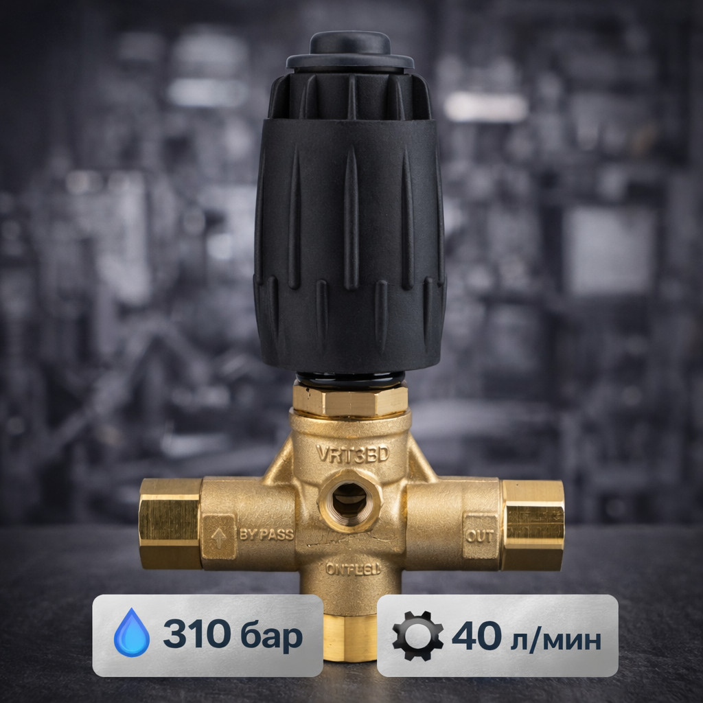 VRT3BD — bypass‑регулятор давления, являющийся доступным аналогом серии VRT3. Рассчитан на работу до 310 бар при расходе до 40 л/мин, применяется в профессиональных и промышленных установках высокого давления.