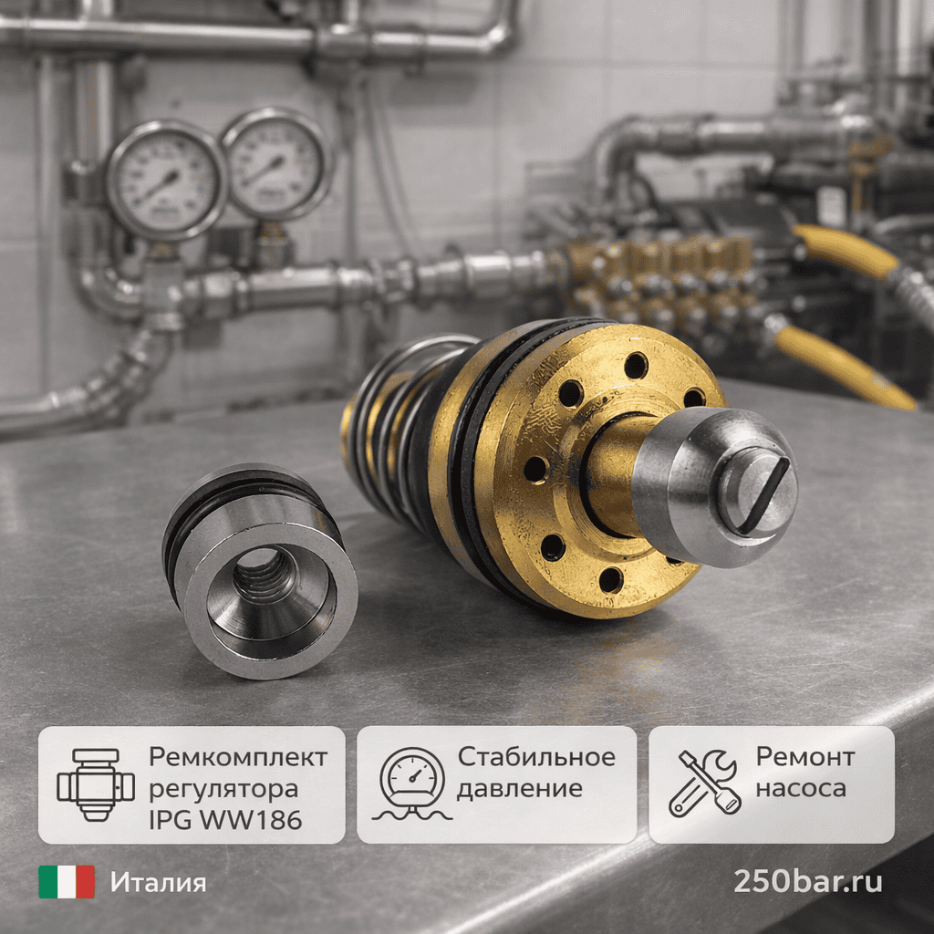 Ремкомплект подходит для насосов IPG WW186, используемых на автомойках, МСО и в промышленных системах высокого давления.