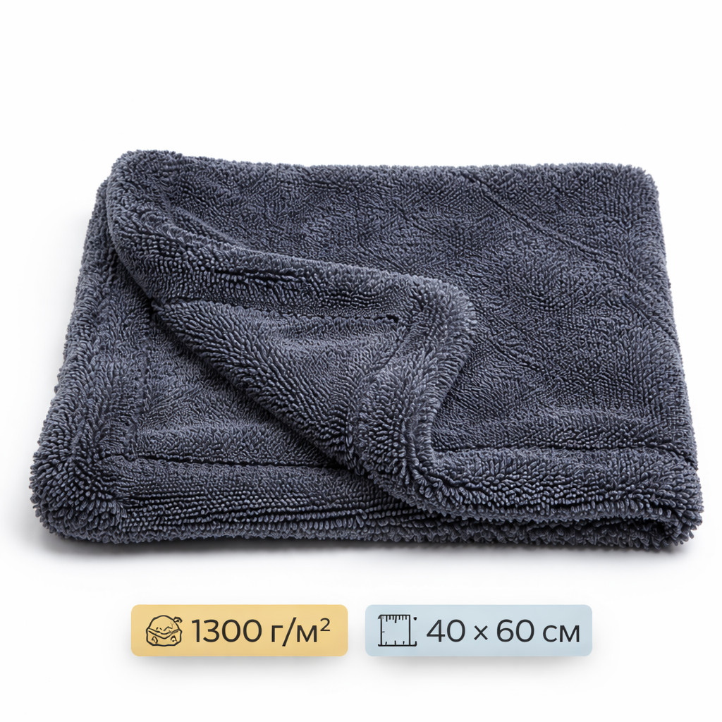 SSCW0402‑1300‑4060 — плотная салфетка из микрофибры 40 × 60 см с плотностью 1300 г/м² для быстрой сушки и бережной полировки без разводов.