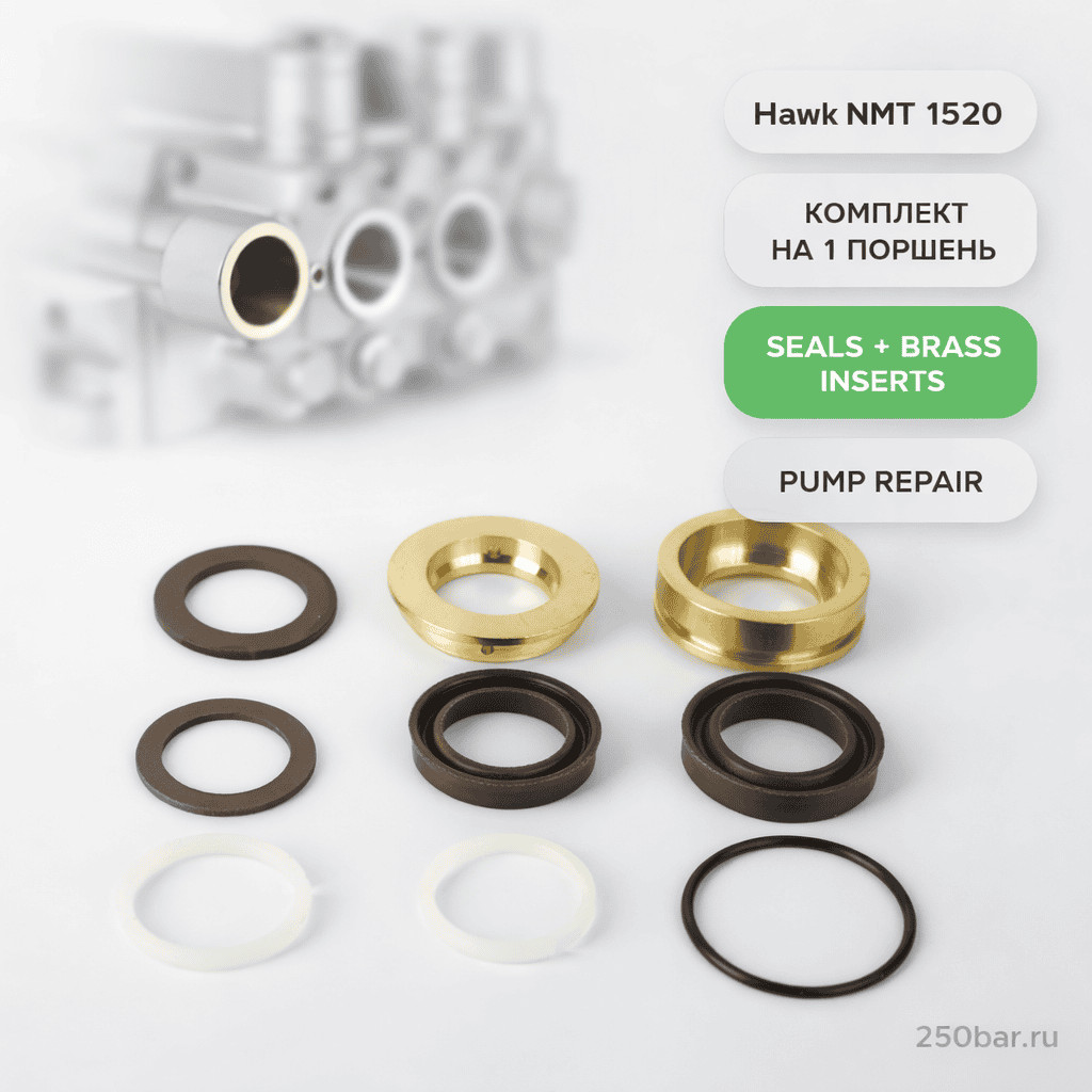 💧🔩 Набор сальников и латунных вставок для насоса Hawk NMT 1520 — на 1 поршень