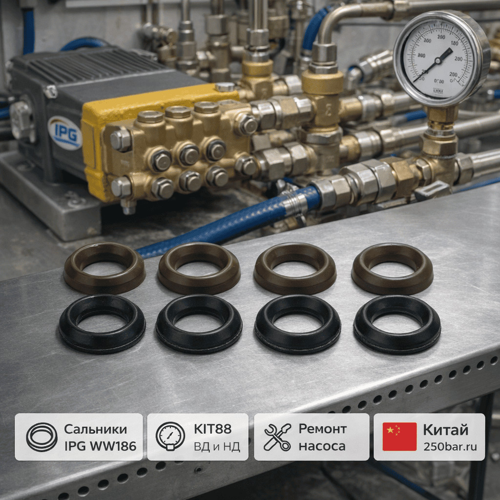 Комплект подходит для насосов IPG WW186, применяемых на автомойках, МСО и в промышленных системах высокого давления.