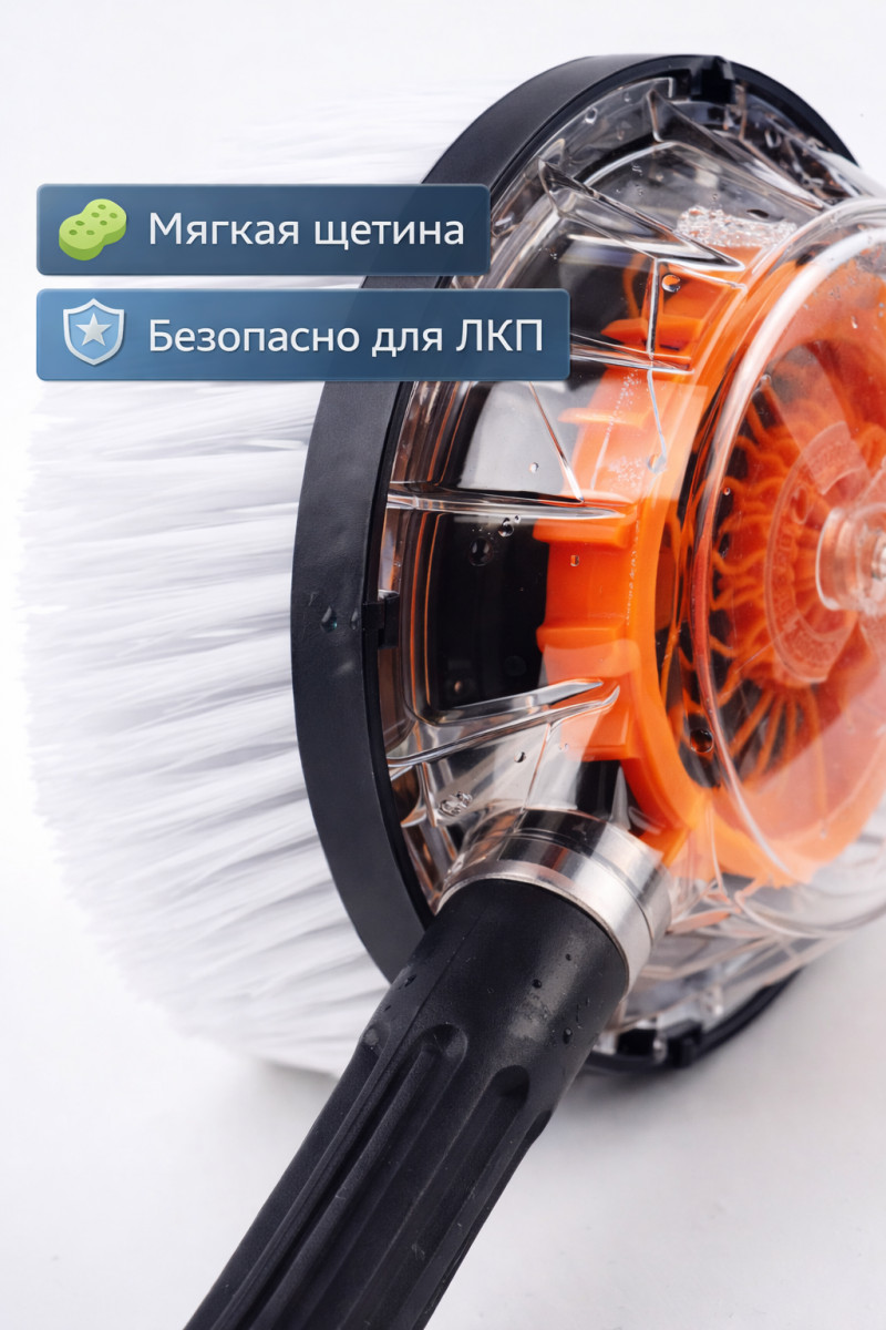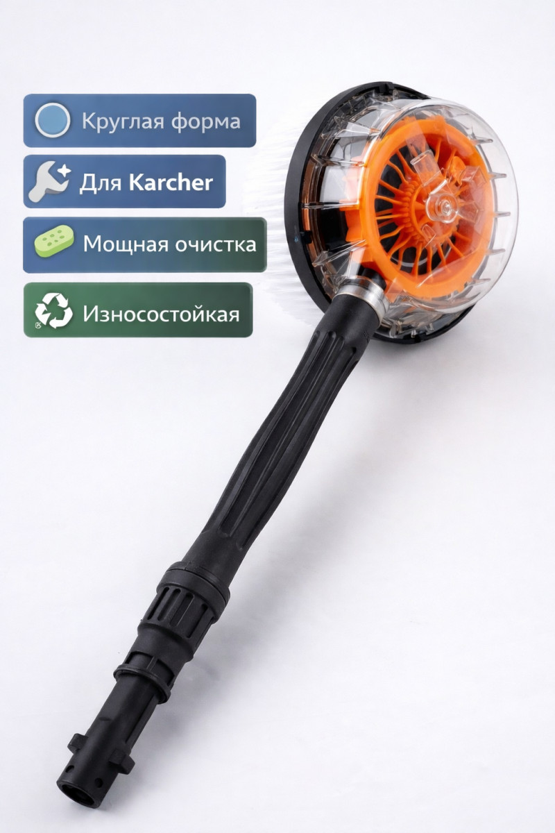 Щётка легко подключается к бытовым мойкам Karcher, устойчива к влаге и рассчитана на регулярную эксплуатацию.