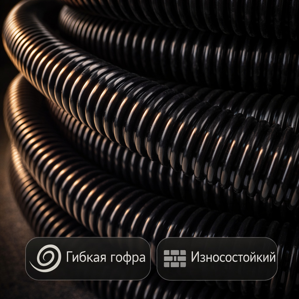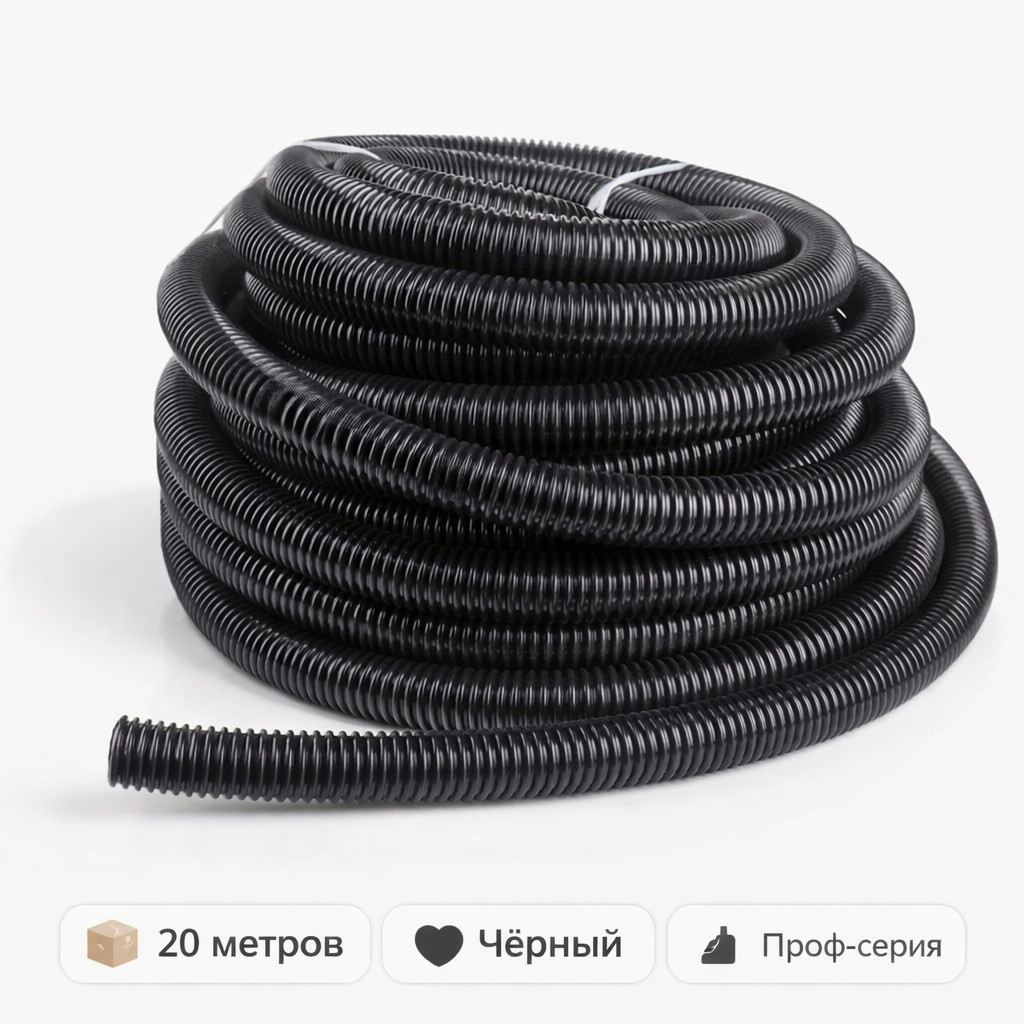 🧹🖤 Шланг вакуумный D‑38 мм чёрный, бухта 20 м — YT‑1002