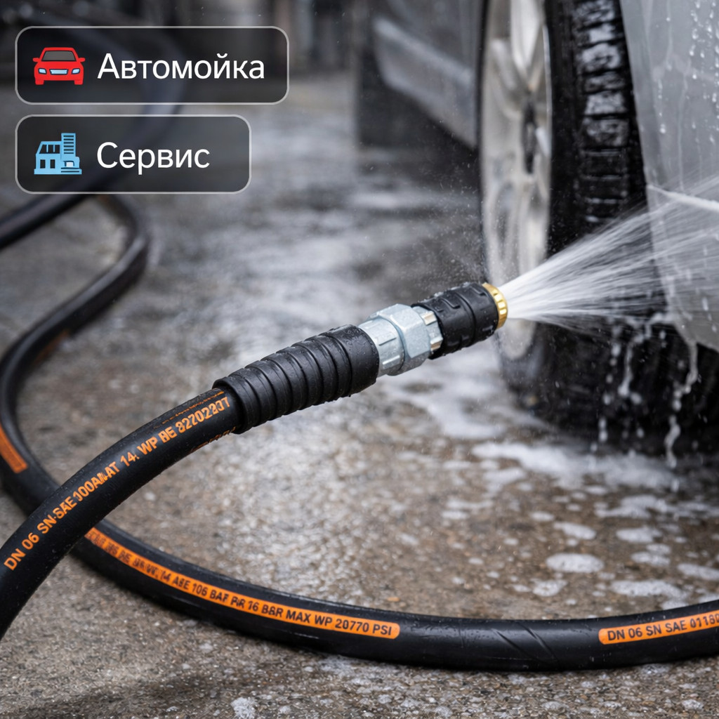Готовый РВД DN6 SN2, 15 м, Г‑Г предназначен для подключения моечного, клинингового и промышленного оборудования без необходимости дополнительной сборки. Стандарт SN2 обеспечивает надёжную работу при высоком давлении и устойчивость к интенсивной эксплуатации.