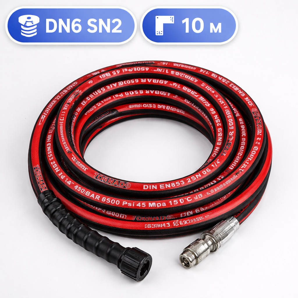 Готовый опрессованный РВД Tornado DN6 SN2, 10 м, Г‑Ш используется для подключения профессионального моечного оборудования без необходимости дополнительной сборки. Стандарт SN2 обеспечивает надёжную работу при высоком давлении и устойчивость к интенсивной эксплуатации.