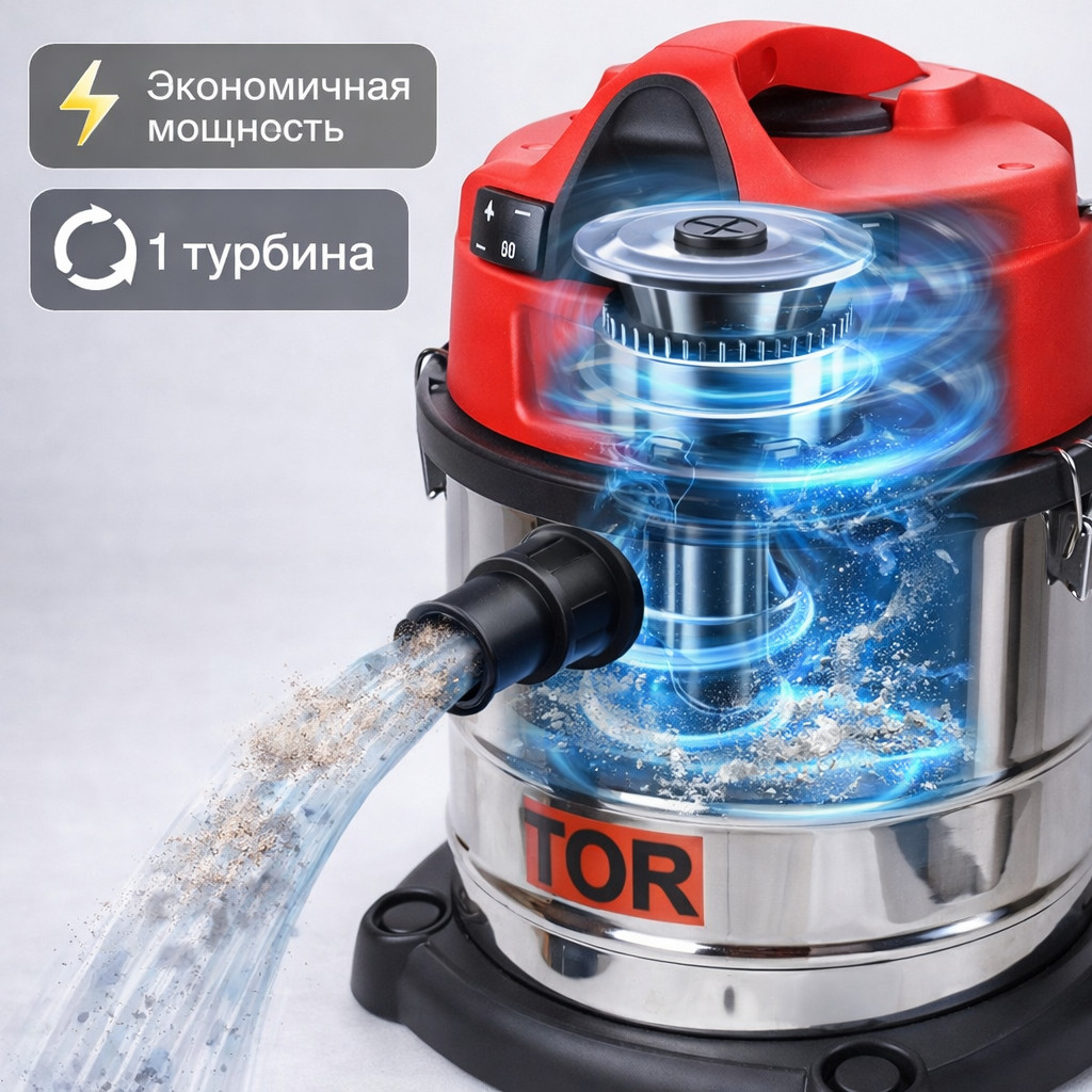 Водопылесос TOR WL092‑30L INOX — практичное решение для клининга, автомоек и сервисных помещений. Одна турбина обеспечивает стабильную силу всасывания при умеренном энергопотреблении, а бак 30 л INOX устойчив к коррозии и удобен при сборе жидкостей.
